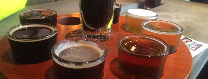 A perfect opportunity to start work on a bucket list item – learn to enjoy beer. So, in my infinite wisdom, I decided to order a flight of beers, and roped Heidi in to help me. I was looking forward to trying the best three or four beers the brewery had to offer. Little did I know, I’d ordered a flight of 8 – EIGHT – beers.